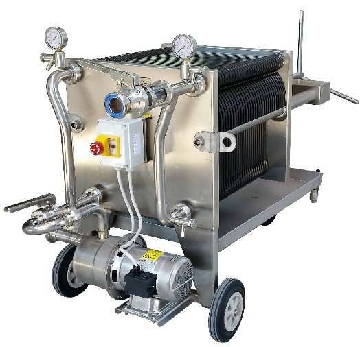 Filtrul cu plăci 40×40 este realizat din oțel inoxidabil, acesta fiind materialul cel mai bun din punct de vedere al durabilității și igienei. Este un produs destinat utilizării profesionale, practice și sigure, care garantează tuturor tipurilor de producători calitatea și siguranța unei filtrări de înalta calitate a produsului. Filtrul este proiectat și construit pentru o utilizare intensă, evidențiată de capacitatea mare de filtrare, este echipat cu supape integrate dotate cu manometre pentru controlul presiunii la intrare și la ieșire și vană de control a debitului și închidere hidraulică. Filtrul este montat pe roți și necesită un efort minim pentru a fi mutat. Se poate livra în varianta cu 20, 30, 40, 50 sau 60 de plăci și este utilizat pentru filtrarea vinului, băuturilor, esențelor naturale și a altor lichide.
